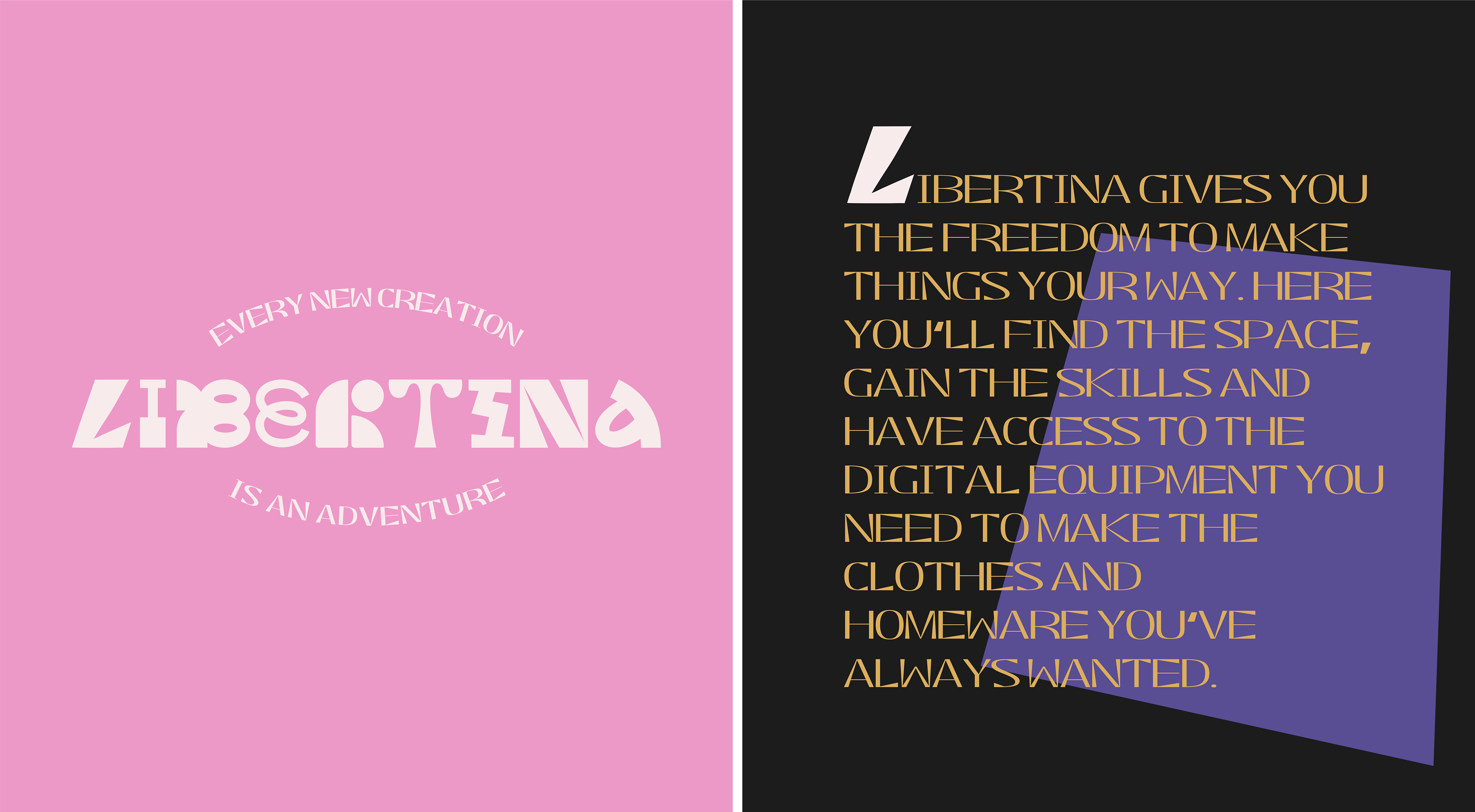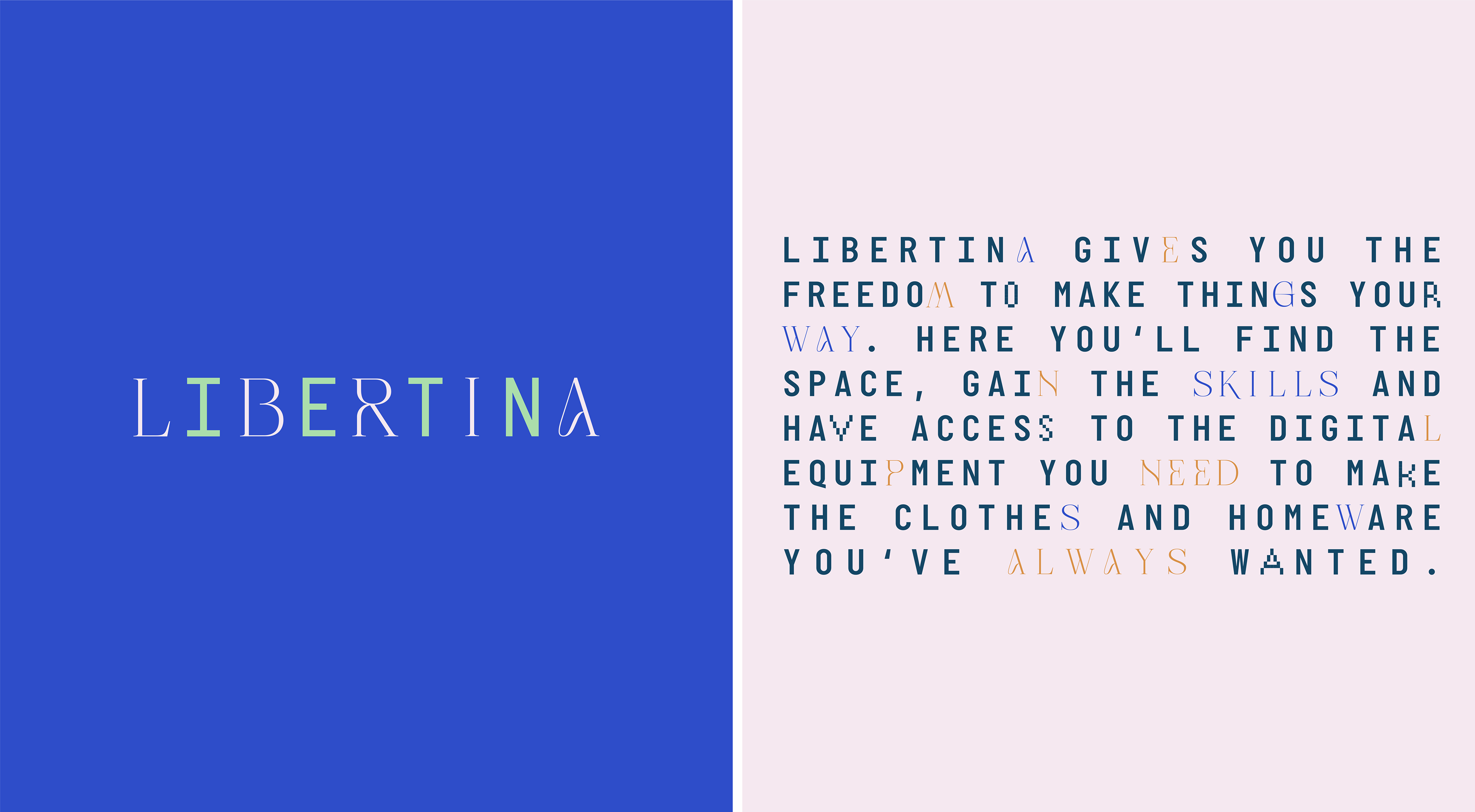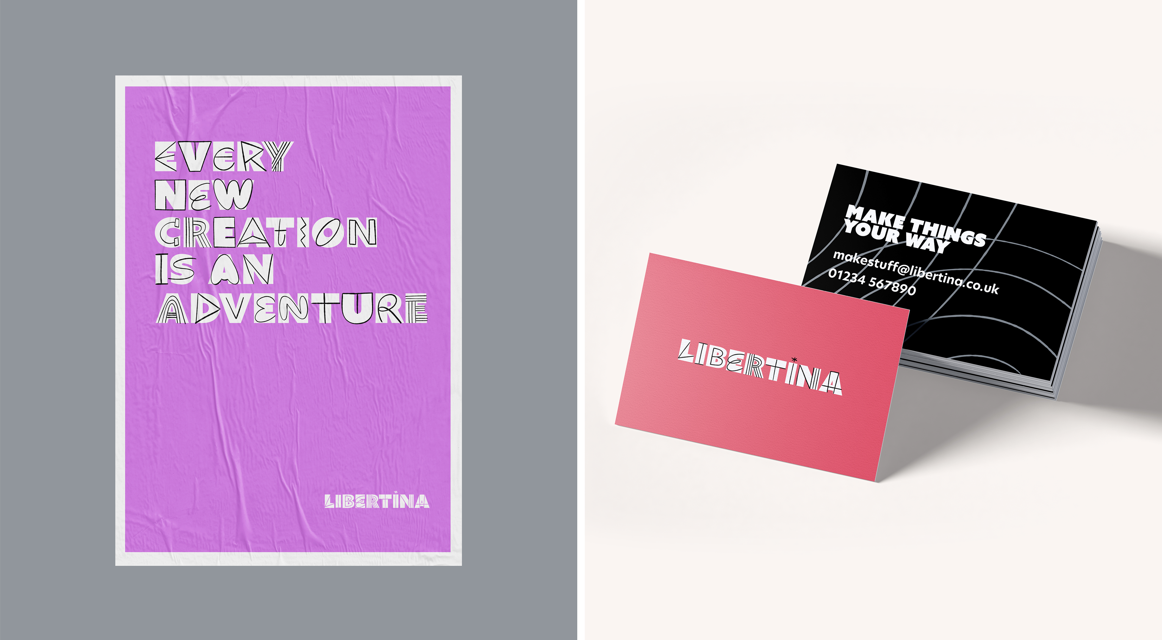 Branding project working with Felt.tips for Libertina who are a joyful alternative to the daily grind for budding and established designers and makers. Who provide a range of technology that enables their customers to make the things they really want to own, gift or sell.