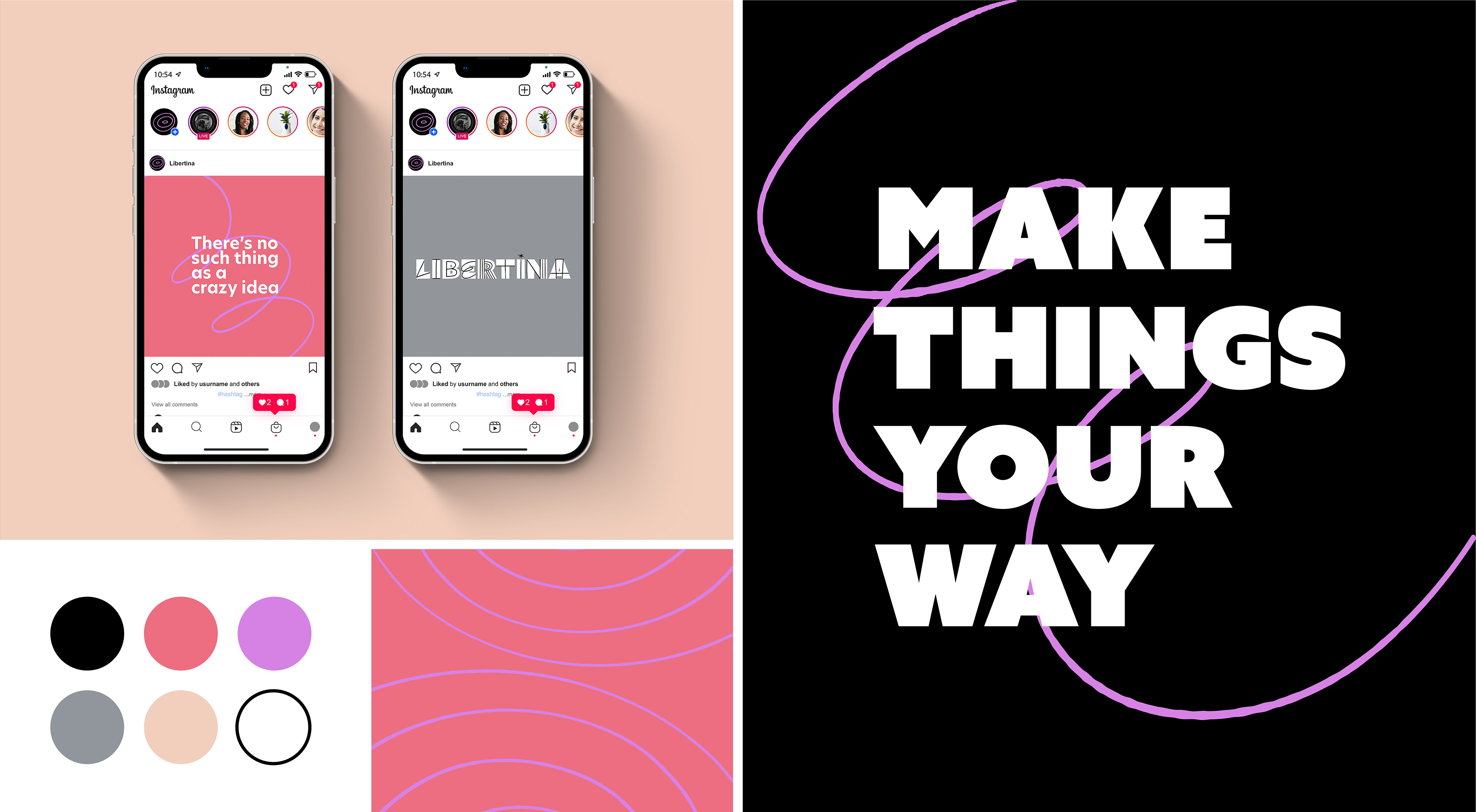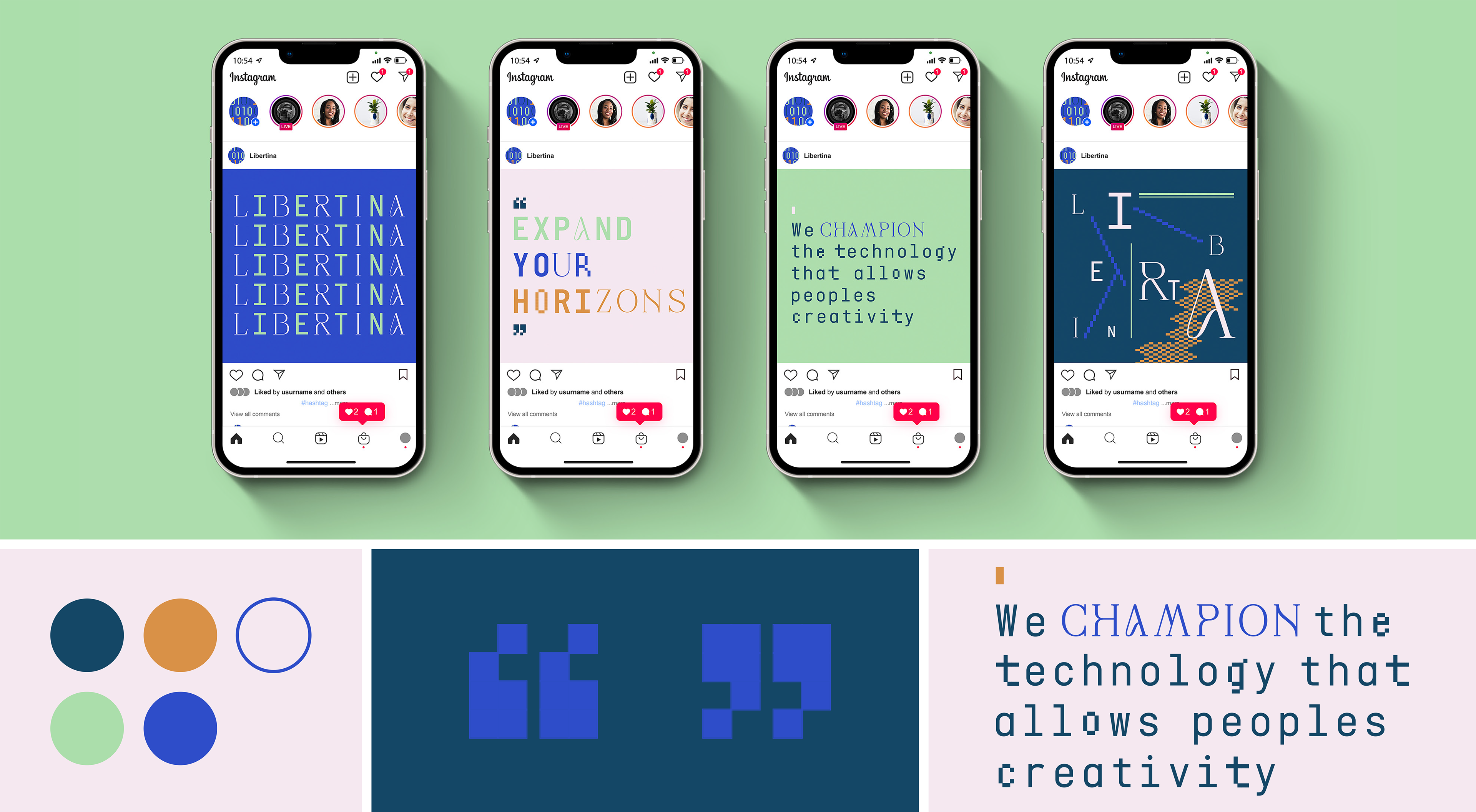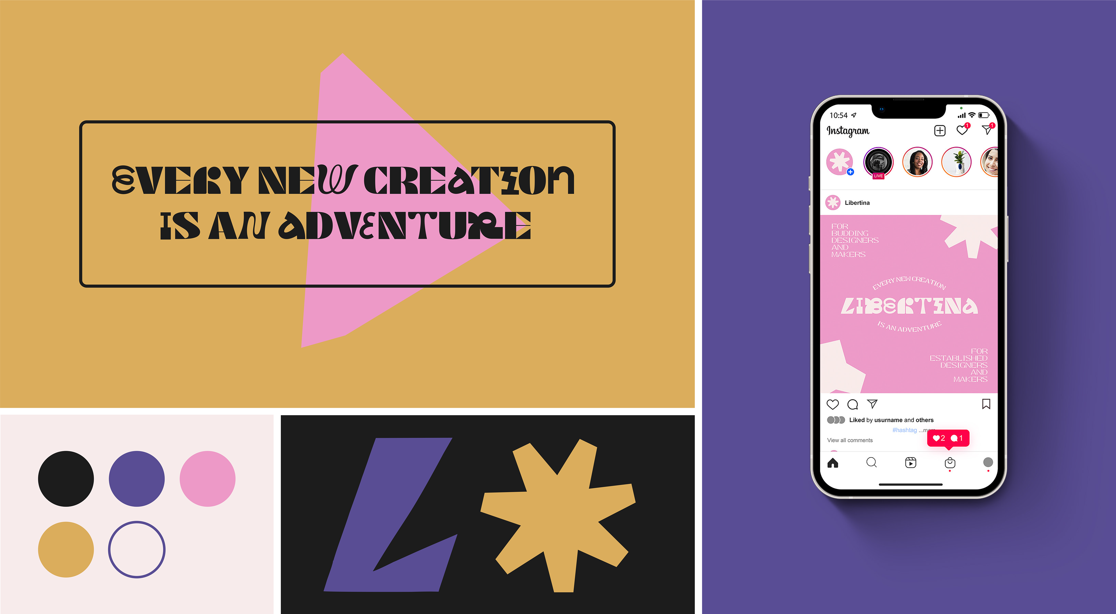 Branding project working with Felt.tips for Libertina who are a joyful alternative to the daily grind for budding and established designers and makers. Who provide a range of technology that enables their customers to make the things they really want to own, gift or sell.